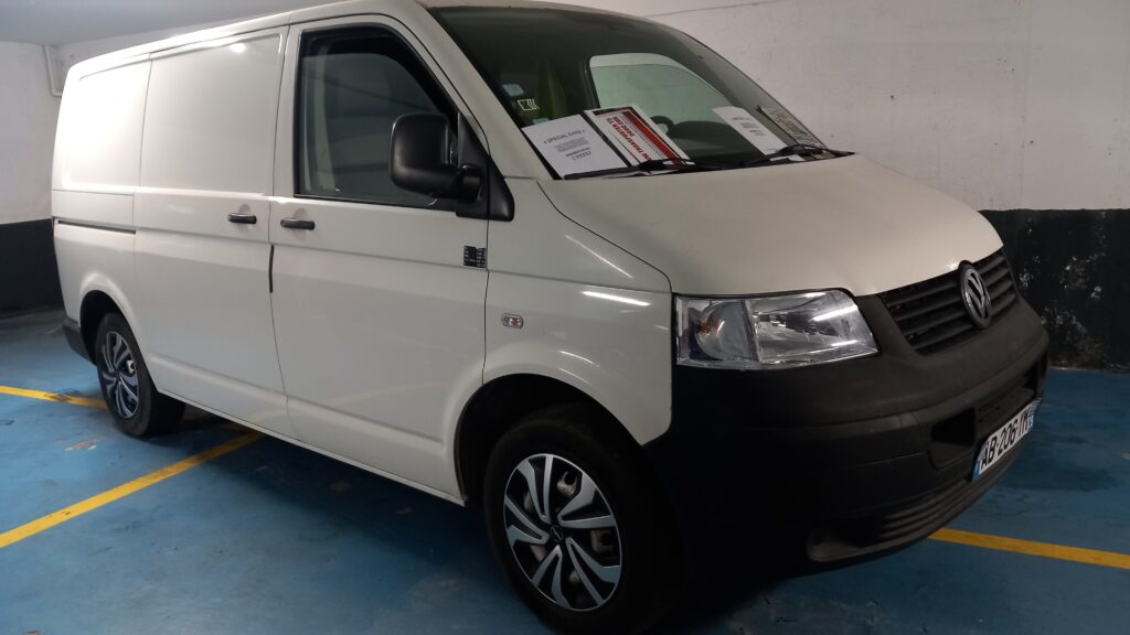 VW TRANSPORTER T5 CONFORT 102 CV – 15/07/2009 – 6 cv fiscaux- 242500 KM DIESEL – boite MECA- ( côté 12200 eur centrale et argus) – PTC 3.0T Révision faite Kit distribution effectué ce mois-ci Idéal artisan ( si enlèvement aménagement caravaning )ou globetrotter avec petit budget pour bien voyager . Véhicule sain – prêt à prendre la route ! Une rayure à signaler et pneus à prévoir Equipement caravaning: Banquette pour dormir assez confortable , rangements , tiroirs, poubelle, rideaux, deux grilles aérations, revêtements et prises.. Garantie 3 mois